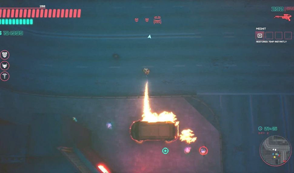 La jugabilidad de Glitchpunk es un festín para todos los fanáticos de la acción de alto octanaje, los tiroteos explosivos y la estética cyberpunk. Es una acción de arriba hacia abajo inspirada en los clásicos del género, envuelta en una capa de neón futurista. Hay un montón de armas, armas cuerpo a cuerpo y vehículos entre los que elegir y causar estragos. Experimente la acción frenética y las persecuciones policiales salvajes mientras escucha ritmos futuristas en la radio de su automóvil robado. Corre, piratea, roba, conduce, dispara y ábrete camino a través del inframundo criminal del futuro. Haz algunos amigos, haz aún más enemigos. Mata o muere, incluso si eso significa matar todo lo que amas.